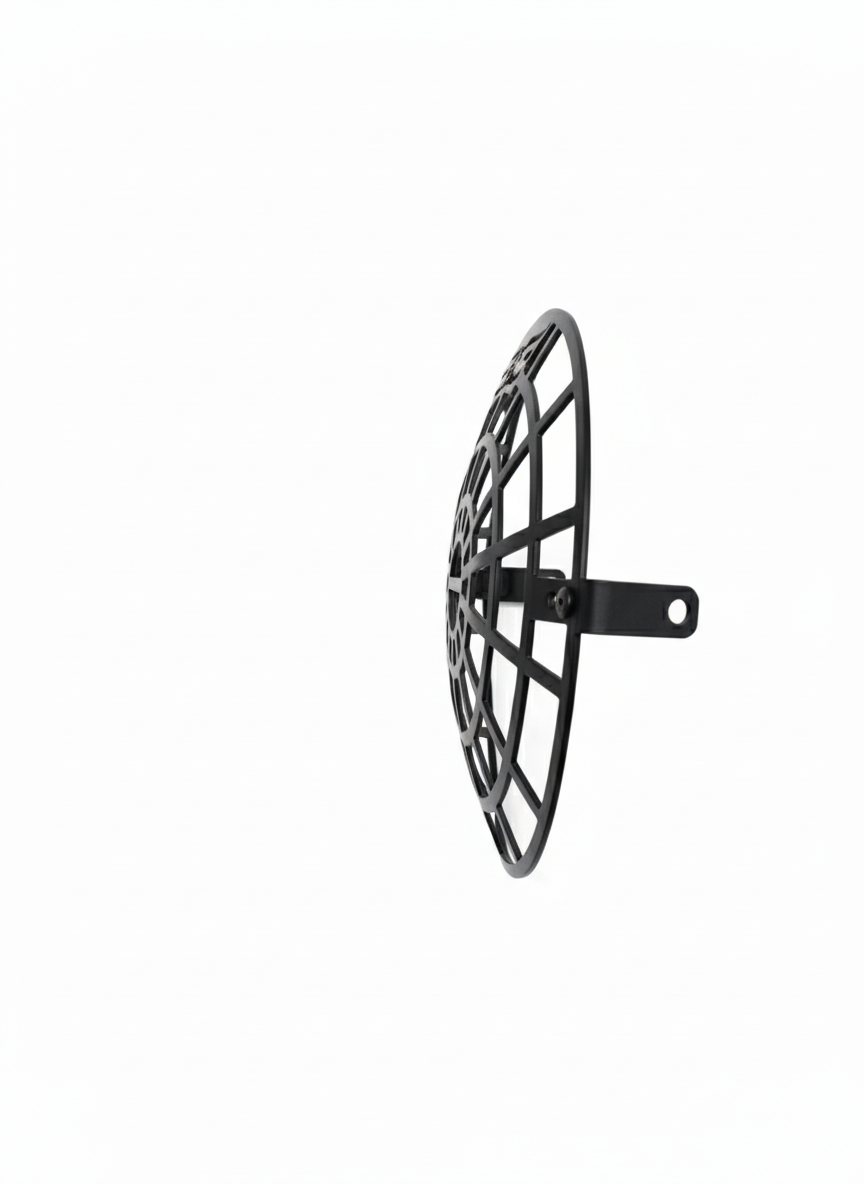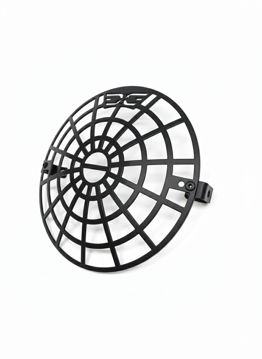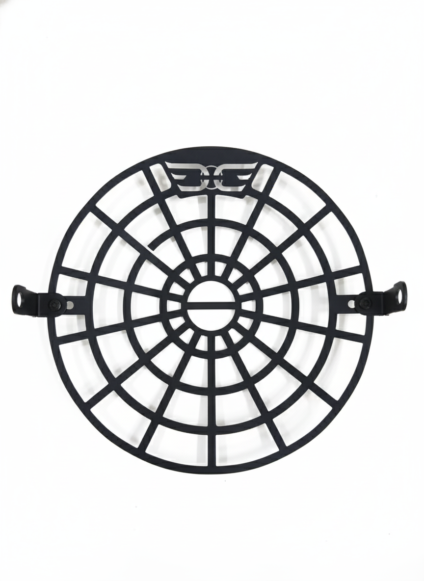 This premium headlight grill/guard is precisely designed for Royal Enfield Himalayan 450 and Guerrilla 450. Made from high-strength carbon steel with a solid 3 mm thickness and a 7.2-inch radius, it delivers excellent protection against stones, debris, and off-road impacts. The precision laser-cut design ensures maximum headlight visibility while safeguarding the lens during touring and adventure rides. Finished in durable black matte or black gloss coating, it offers corrosion resistance and long-lasting performance. Easy bolt-on installation requires no drilling or modification, making it a perfect upgrade for riders seeking protection, durability, and rugged styling.
