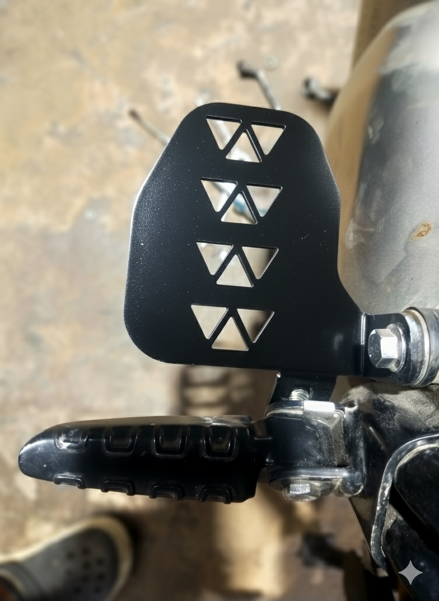 Made with durability, stability, and ease of use in mind, the ladies footrest seamlessly integrates with the Himalayan 450’s rugged design without compromising on style or safety. — DMotoTech